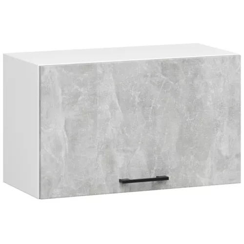 Modern, 60 cm széles fali konyhaszekrény fehér korpusszal és beton hatású fronttal. Ideális választás sütő fölé, praktikus tárolási megoldást kínál a konyhában.