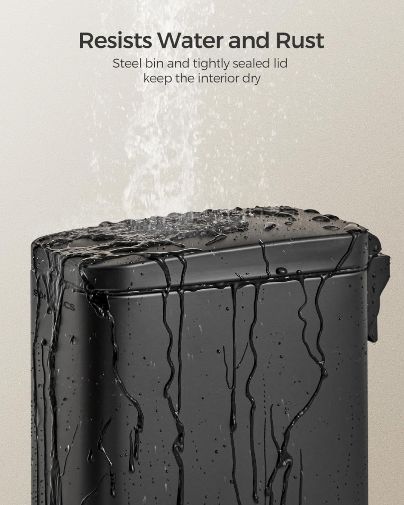 A SONGMICS slim szemeteskosár a tökéletes választás azok számára, akik funkcionalitást és elegáns dizájnt keresnek kis fürdőszobájukba. A rozsdamentes acél test és a szorosan záródó fedél védelmet nyújt a nedvesség ellen, miközben a 5 literes kapacitás elegendő teret biztosít a napi hulladék tárolására. A karcsú, 14,4 cm széles profil minimális helyet foglal, így még a legszorosabb terekbe is könnyedén beilleszthető.